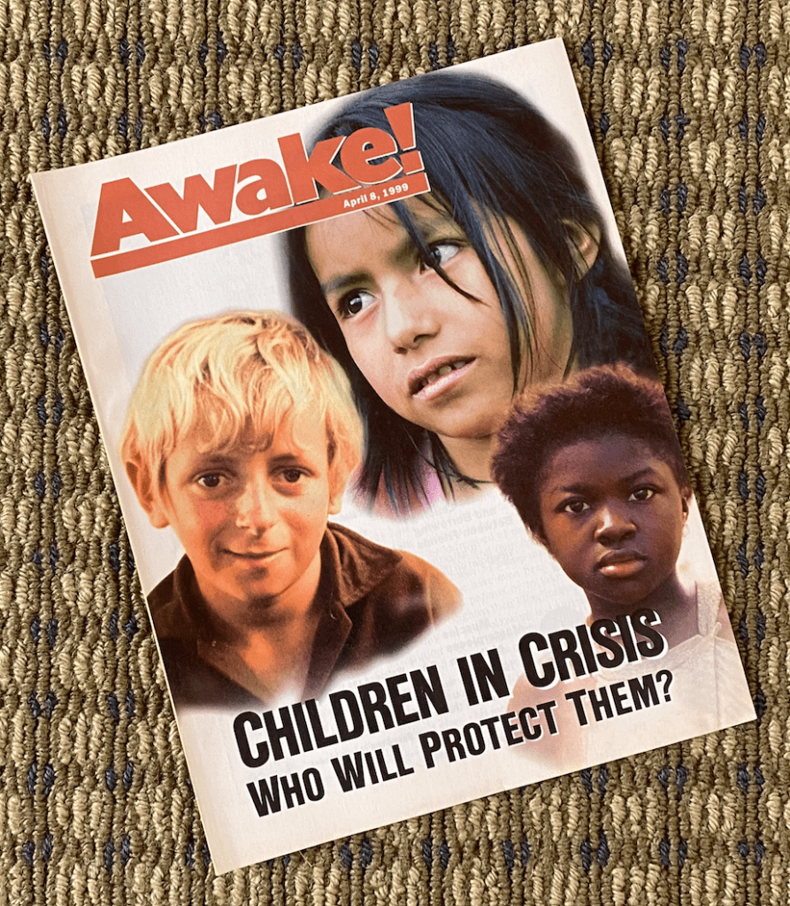 In 1999, Jehovah’s Witnesses across New Zealand offered to the public the April 8 issue of their magazine Awake!, dealing with the subject Children in Crisis – Who Will Protect Them? The image below is a copy of the Australia / New Zealand version of the magazine.