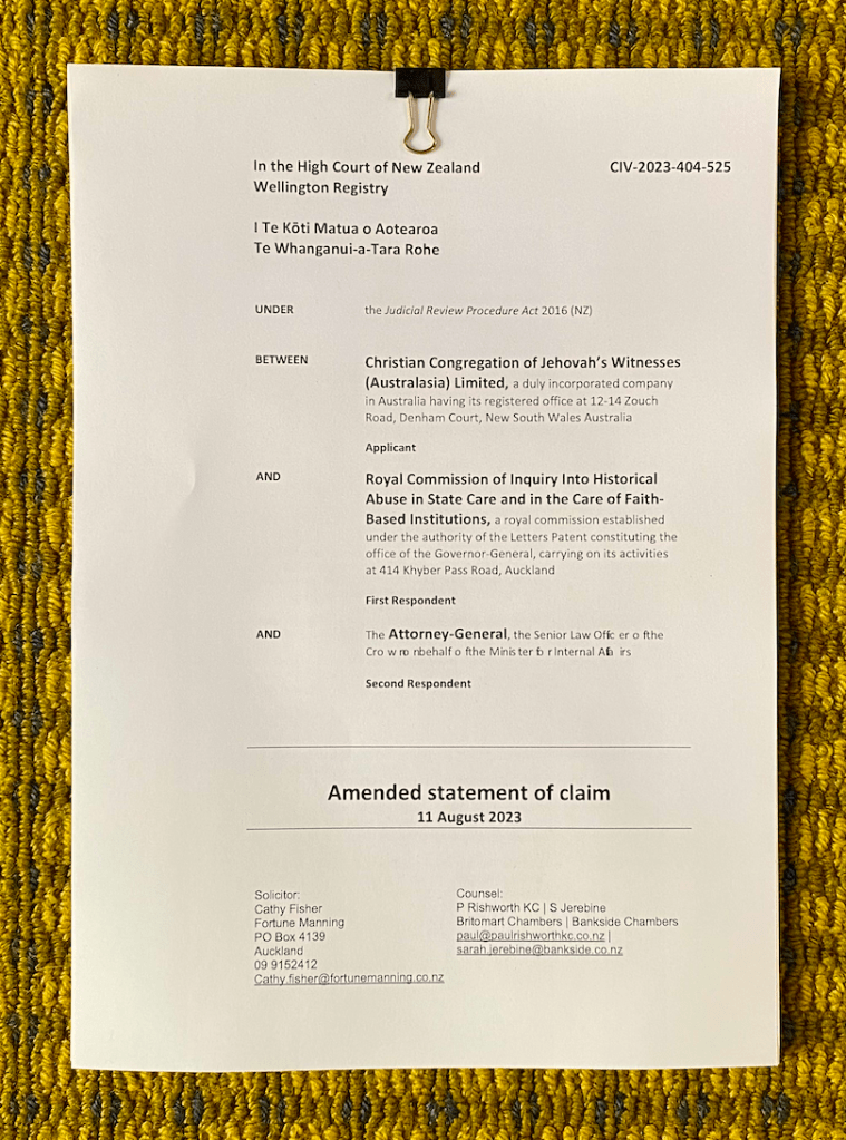 Our ongoing concern is the level of false and misleading information that has been provided to the Commission by the religion of Jehovah’s Witnesses since 2019, and of which information is finding its way into the Applicant’s Statement of Claim and brief in the proceedings before the High Court of New Zealand (CIV-2023-404-525) due to commence on 9 October 2023.