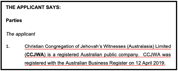CCJWA is a company subject to the Australian Corporations Act 2001. It is not a religion despite having adopted and registered the business name “Jehovah’s Witnesses”, an action which can create a level of confusion, not just for the Commission but also for CCJWA in trying to answer questions about ‘itself’.