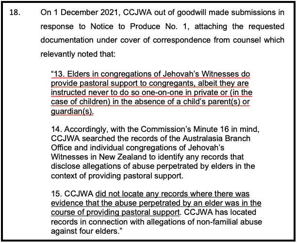 In Part 1 of our Open Letter, published on 1 October 2023, we stated the following in relation to claims being made by the Christian Congregation of Jehovah’s Witnesses (Australasia) Limited (CCJWA) in its Statement of Claim before the High Court of New Zealand: