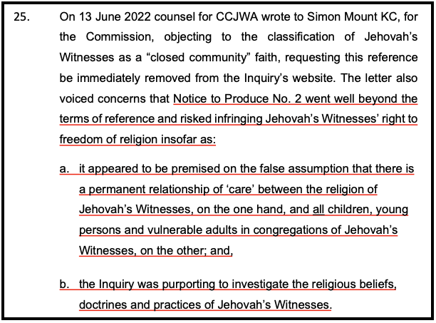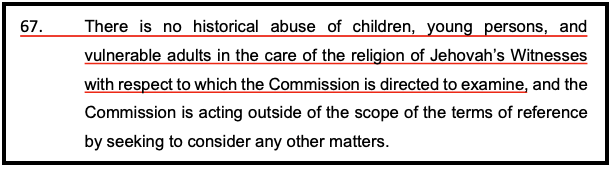 “Ongoing Concern: Our ongoing concern is the level of false and misleading information that has been provided to the Commission by the religion of Jehovah’s Witnesses since 2019, and of which information is finding its way into the Applicant’s Statement of Claim and brief in the proceedings before the High Court of New Zealand (CIV-2023-404-525) due to commence on 9 October 2023.”