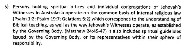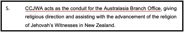 Paragraphs 2 of CCJWA’s Statement of Claim says that the Australasia Branch Office of Jehovah’s Witnesses is an ‘ecclesiastical’ body. When read in conjunction with paragraph 5, CCJWA is effectively and incorrectly stating that “CCJWA acts as the conduit for the ecclesiastical Australasia Branch Office of Jehovah’s Witnesses.”