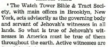Also worth noting is that from 1 January 1950 (the commencement of the time period being the subject of the Inquiry by the Commission) the Watch Tower Society was the governing body of Jehovah’s Witnesses.